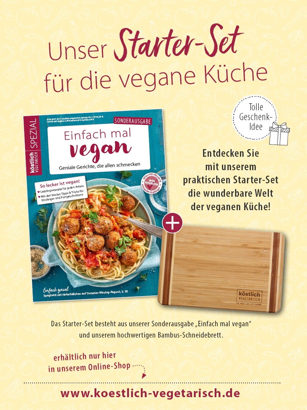 Das vegane Starter-Set von köstlich vegetarisch ist für alle gedacht, die sich die wunderbare Welt der veganen Küche neu erschließen möchten.