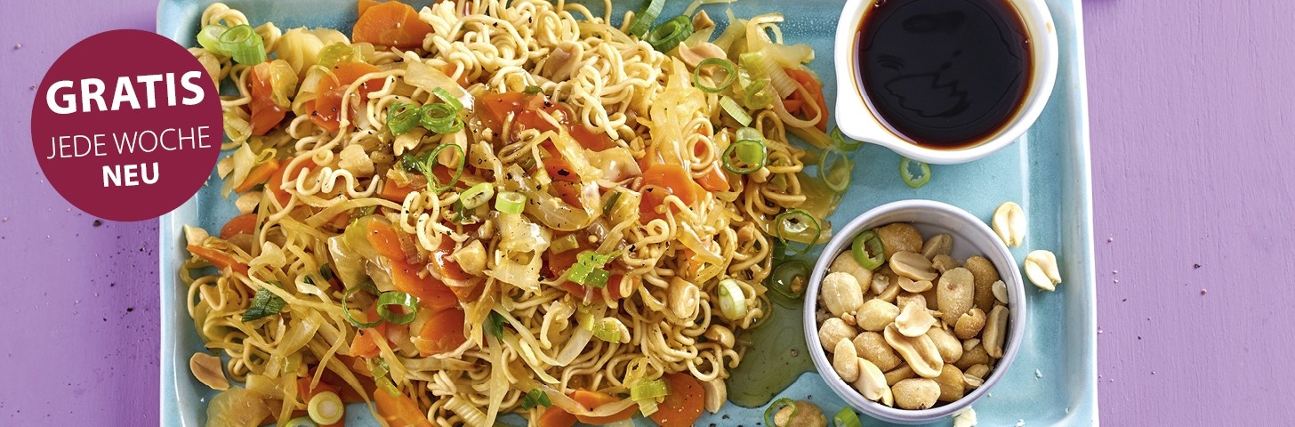 Bratnudeln mit Weißkohl und Erdnüssen alle Seiten ansehen