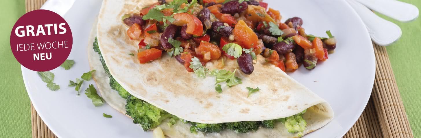 Brokkoli-Quesadillas mit Bohnenragout alle Seiten ansehen