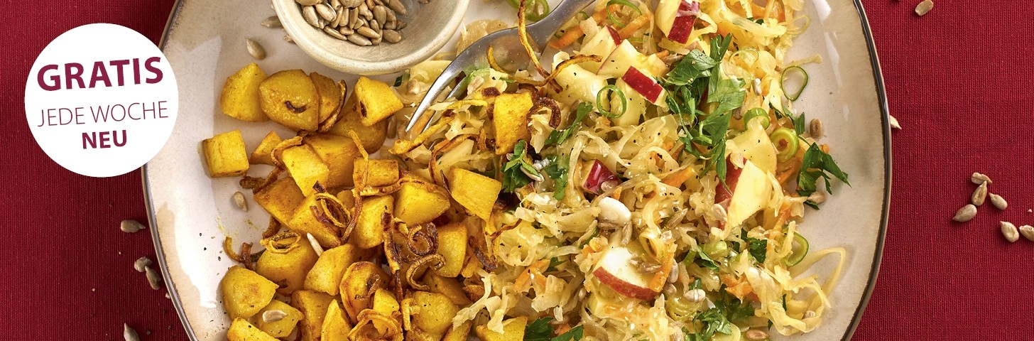 Curry-Bratkartoffeln mit Sauerkraut-Apfel-Salat alle Seiten ansehen