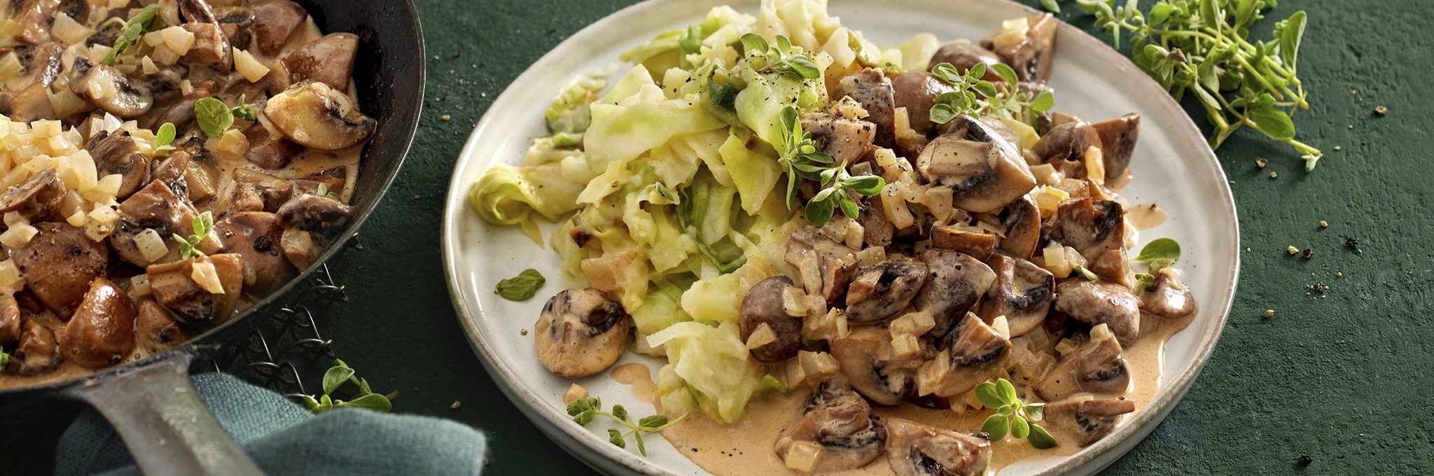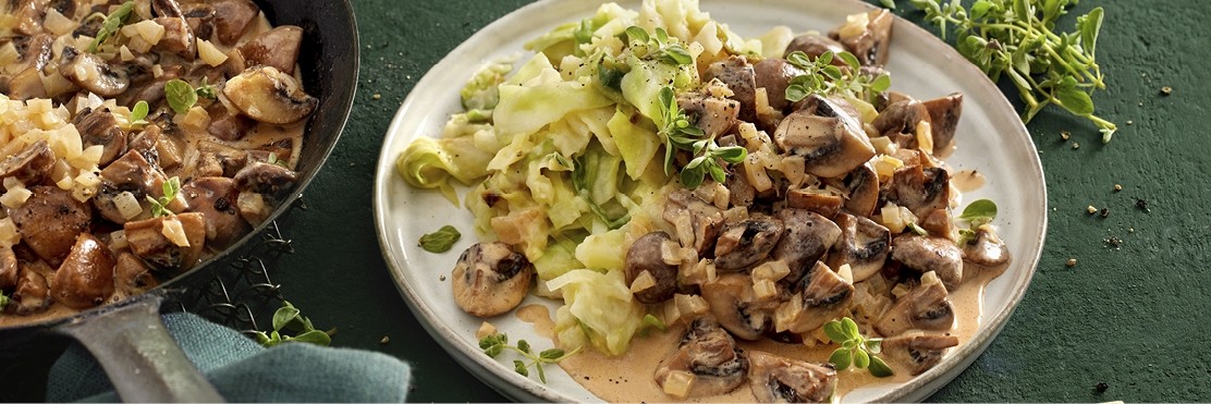 Deftige Pilzpfanne mit irischem Kartoffel-Spitzkohl-Püree (Colcannon)