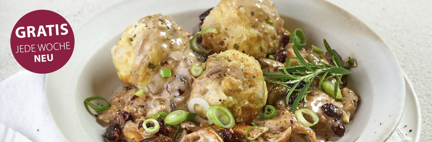 Feine Pecorino-Knödel mit Pilz-Cranberry-Soße alle Seiten ansehen