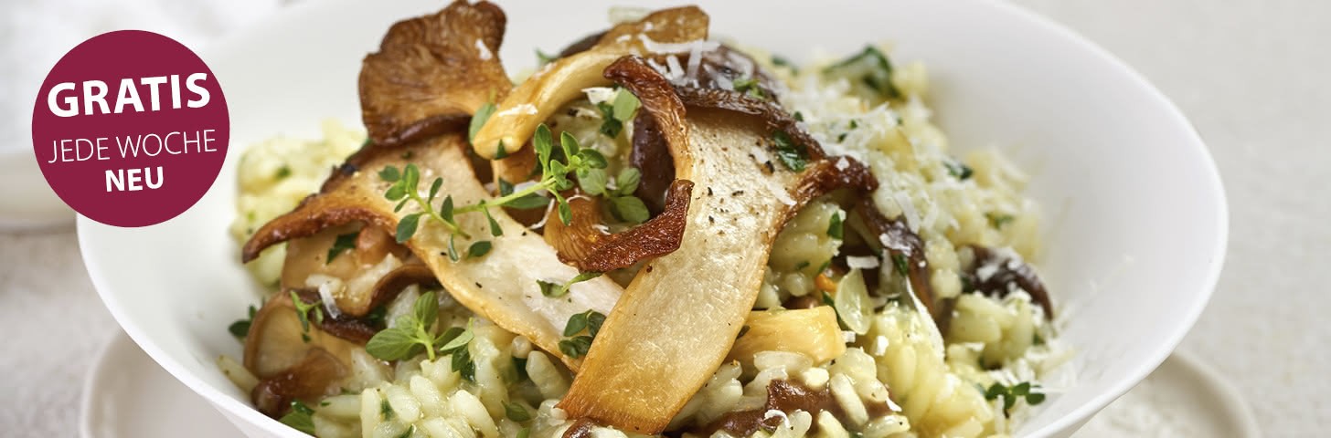 Feines Pilzrisotto mit Thymian und Parmesan alle Seiten ansehen