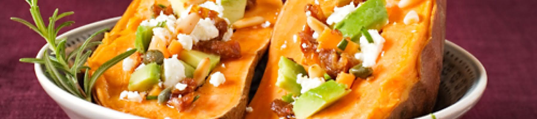 Gefüllte Süßkartoffeln mit Avocado und Feta