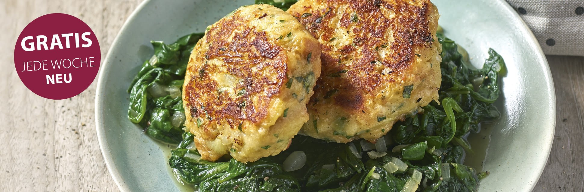 Kaspressknödel auf Blattspinat alle Seiten ansehen