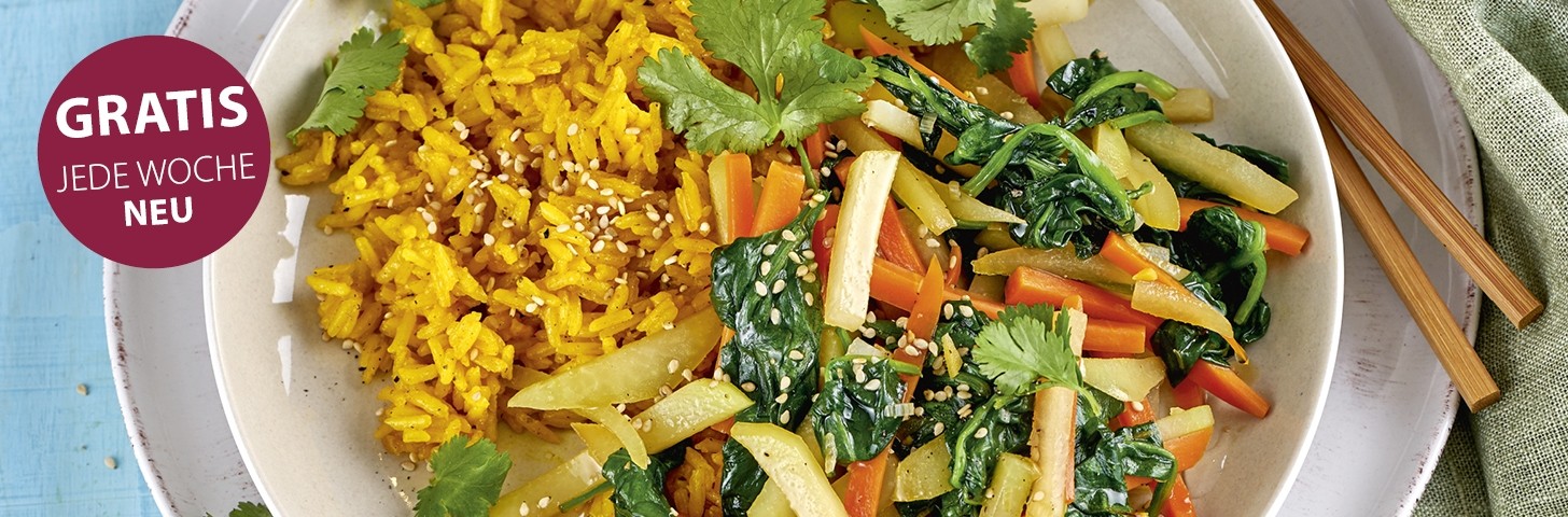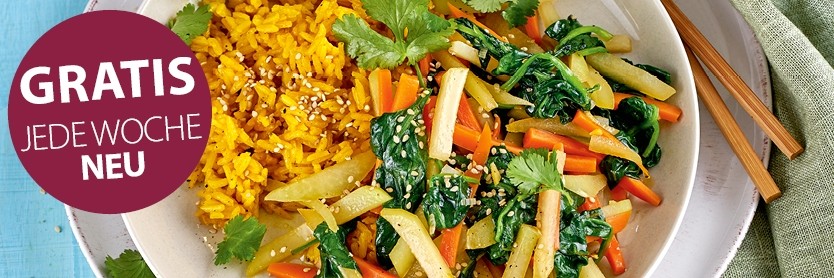 Kohlrabi-Möhren-Wok mit Kurkuma-Zitronen-Reis alle Seiten ansehen