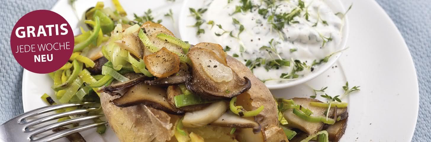 Kumpir mit Kräuterseitling- Füllung und Frühlingskräuter-Quark alle Seiten ansehen