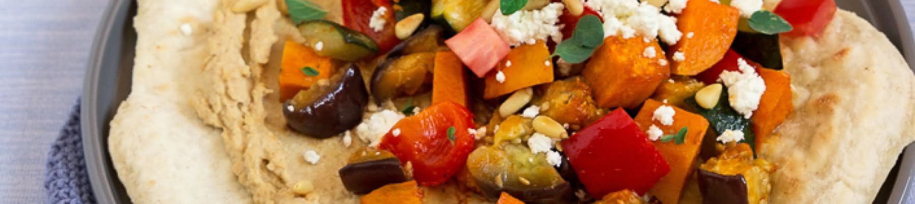 Mediterraner Fladen mit Hummus und Ofengemüse