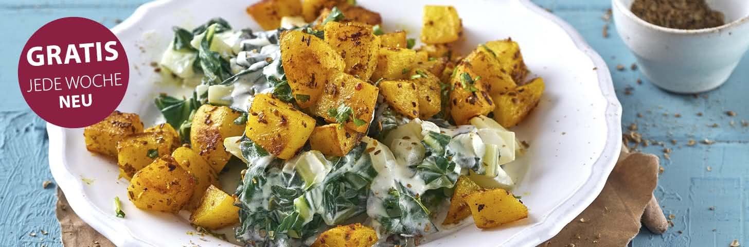 Orientalische Bratkartoffeln mit cremigem Mangold alle Seiten ansehen