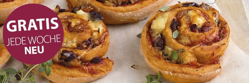 Rote Pizzaschnecken mit Zwiebel-Konfitüre und Brie alle Seiten ansehen