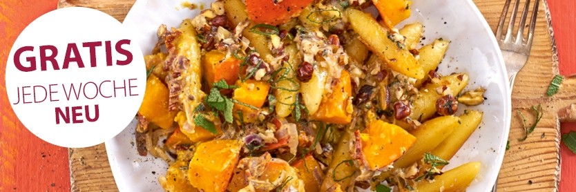 Schupfnudel-Kürbis-Pfanne mit Haselnuss-Salbei-Topping alle Seiten ansehen