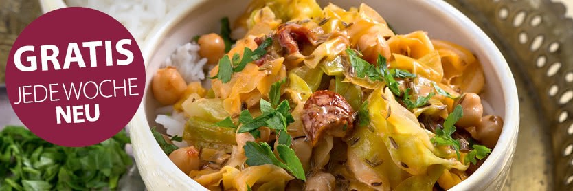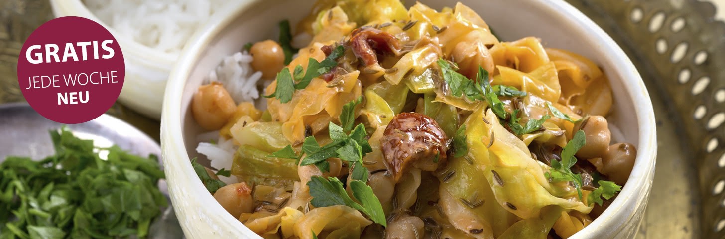 Spitzkohl-Kichererbsen-Gemüse mit Basmatireis alle Seiten ansehen